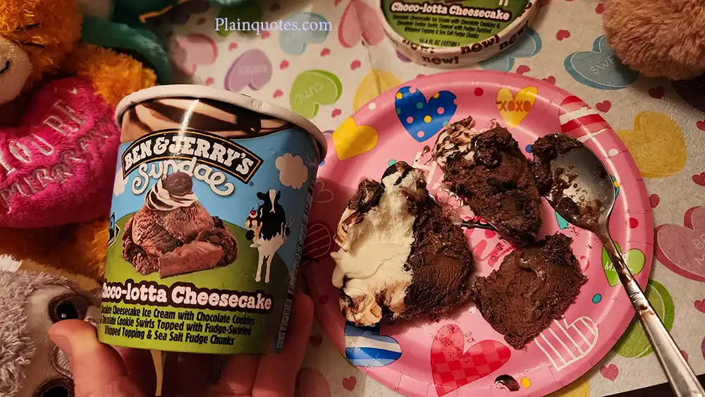 This one is interesting because it really delivers the cheesecake type of flavor just rich in chocolate. Kind of hints me to Chocolate Cheesecake that I’ve had from the Cheesecake Factory before. The whipped topping on top tastes like vanilla ice cream and not whipped cream when mixed with the chocolate. This is what I like to call a unique taste between chocolate and cheesecake. The chocolate pieces on top give me a dark chocolate flavor that is kind of bitter. Also, I think the chocolate pieces are from Tony’s Chocolonely because I’ve had Ben & Jerry’s flavor chocolate bar from Tony’s Chocolonely.