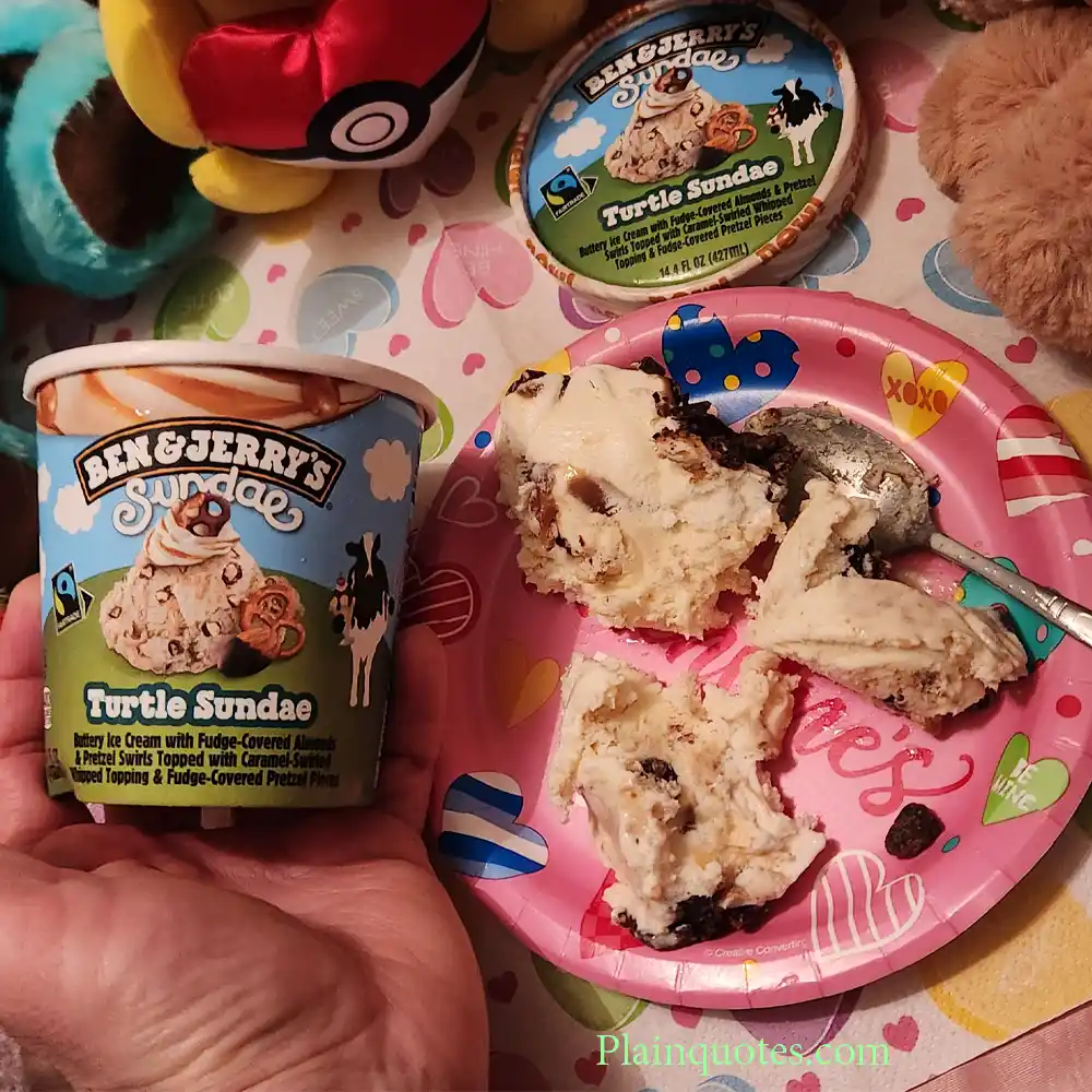 When eating this one you really get buttery taste along with very salty and chocolatey flavors too. I love the chocolate covered almonds but the pretzels kind of annoy me. I think it would be fun if this came with actual turtle shape chocolate pieces inside the ice cream.