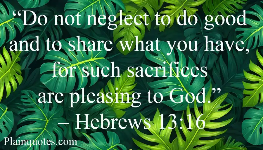 “Do not neglect to do good and to share what you have, for such sacrifices are pleasing to God.” – Hebrews 13:16