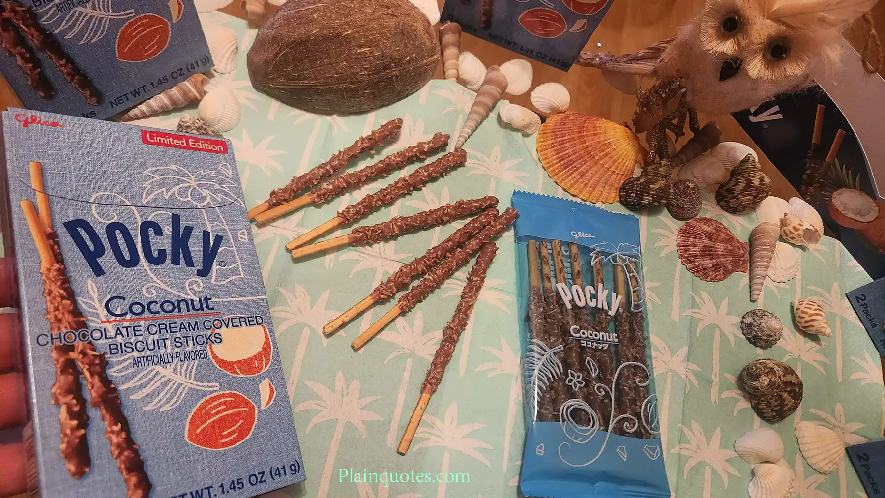 I’ve had so many Pocky biscuit sticks, but this was the first time trying the coconut sticks. As you bite into this what you get is two flavors that just dominate: coconut flavor and milk chocolate flavor.