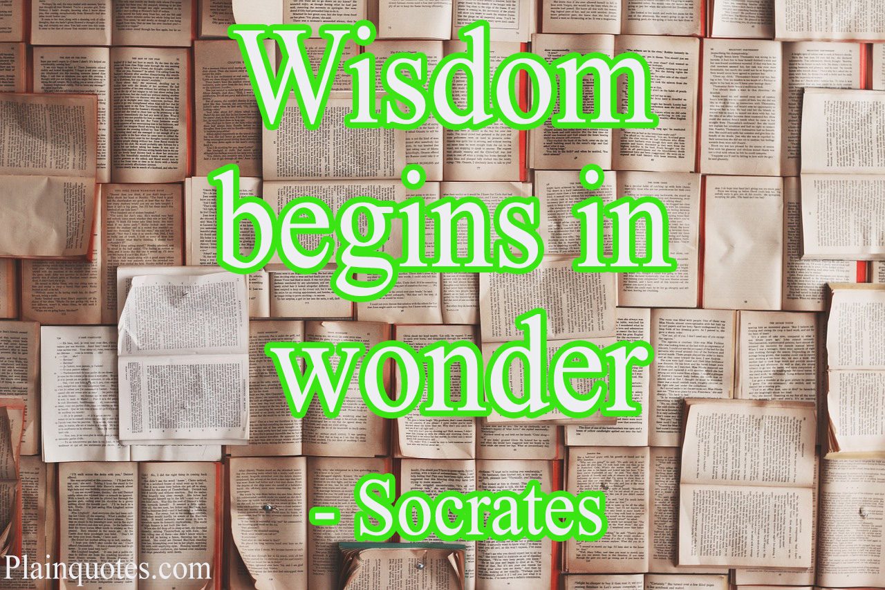 As I keep wondering I’m just going to wonder that this makes absolute sense. What is wisdom? To me, wisdom is a common knowledge and a brain from God that you see in Gods point of view. In other words, you are understanding and open to education. In a way, this quote by Socrates can make sense. As you start to wonder, you start to use your knowledge, therefore wisdom comes into effect. I’m sure Socrates has a deeper level of knowledge for this quote, but anything alike can relate.