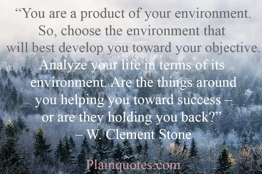 Analyze your life in terms of its environment. Are the things around you helping you toward success – or are they holding you back?” – W. Clement Stone