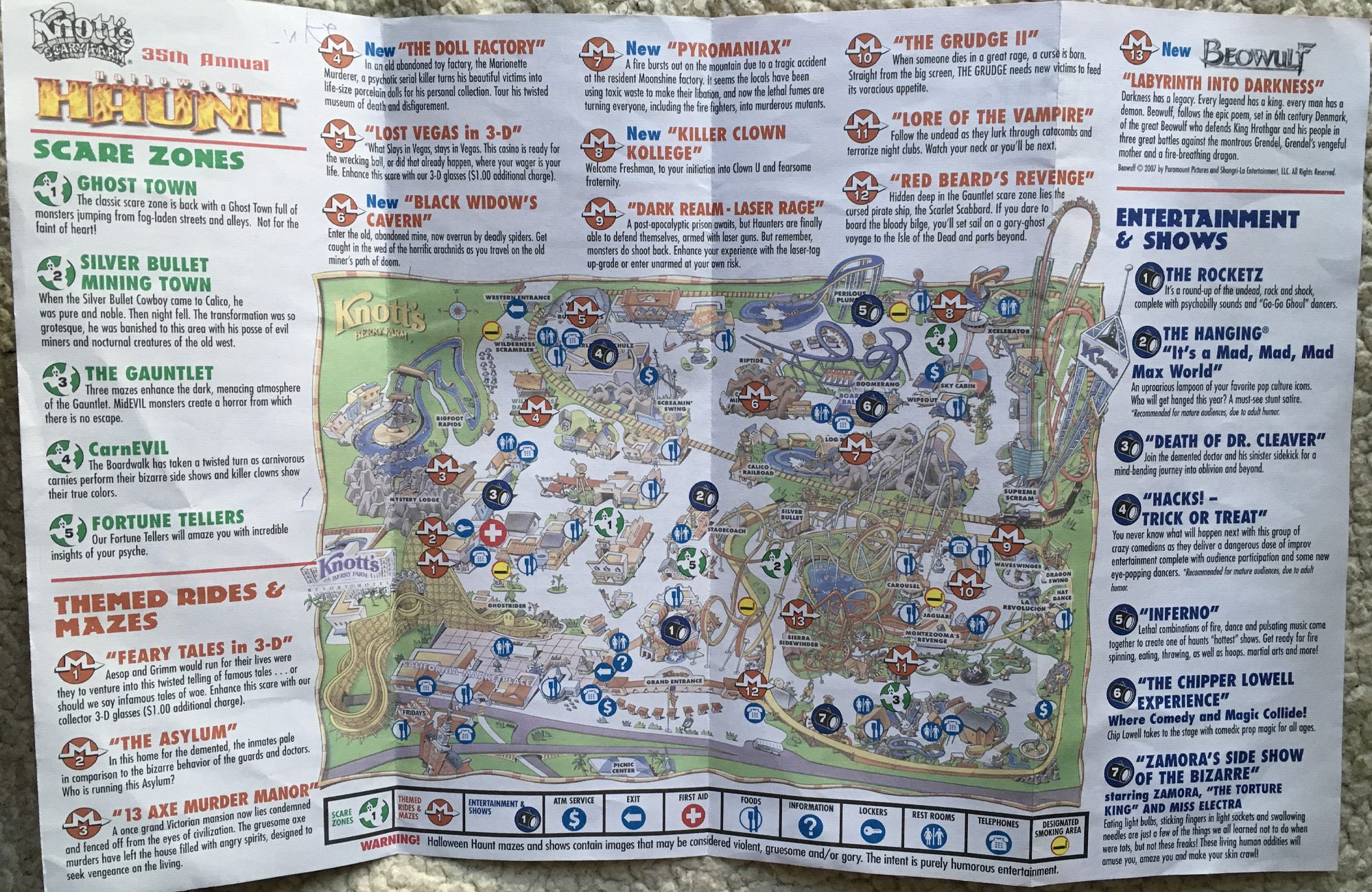 As I’m opening up the map the first thing that grabs my attention is the Fortune Tellers Scare Zones. I’m not sure exactly how that scare zone is going to be like, but its something I would be looking forward to. I just hope my fortune doesn’t give me the Halloween Goosebumps. The 2nd thing that grabs my attention is the Beowulf attraction. I’m just not sure what that is, but is new and something I would just want to check out.