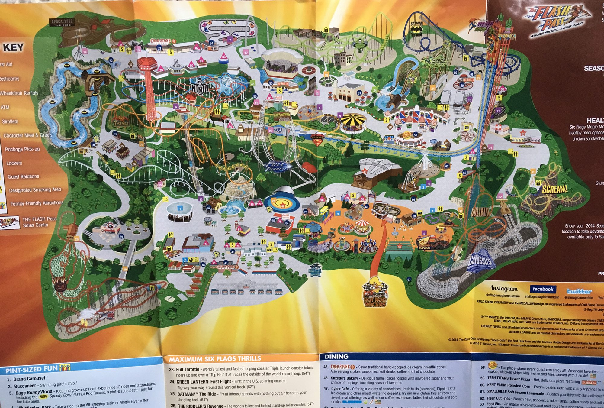 This is the 2014 Six Flags Map of Los Angeles Valencia CA.
