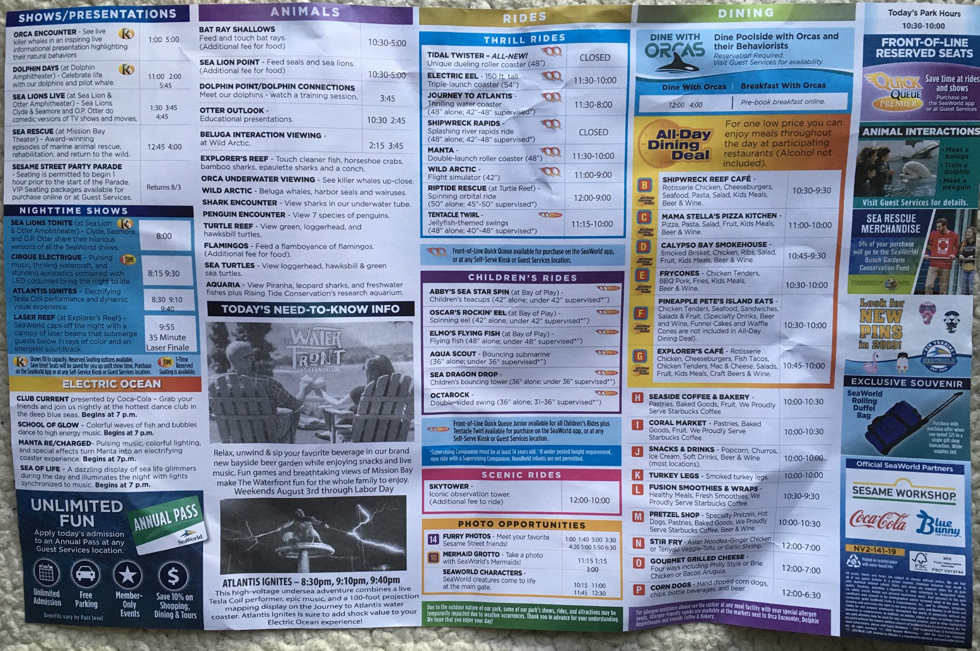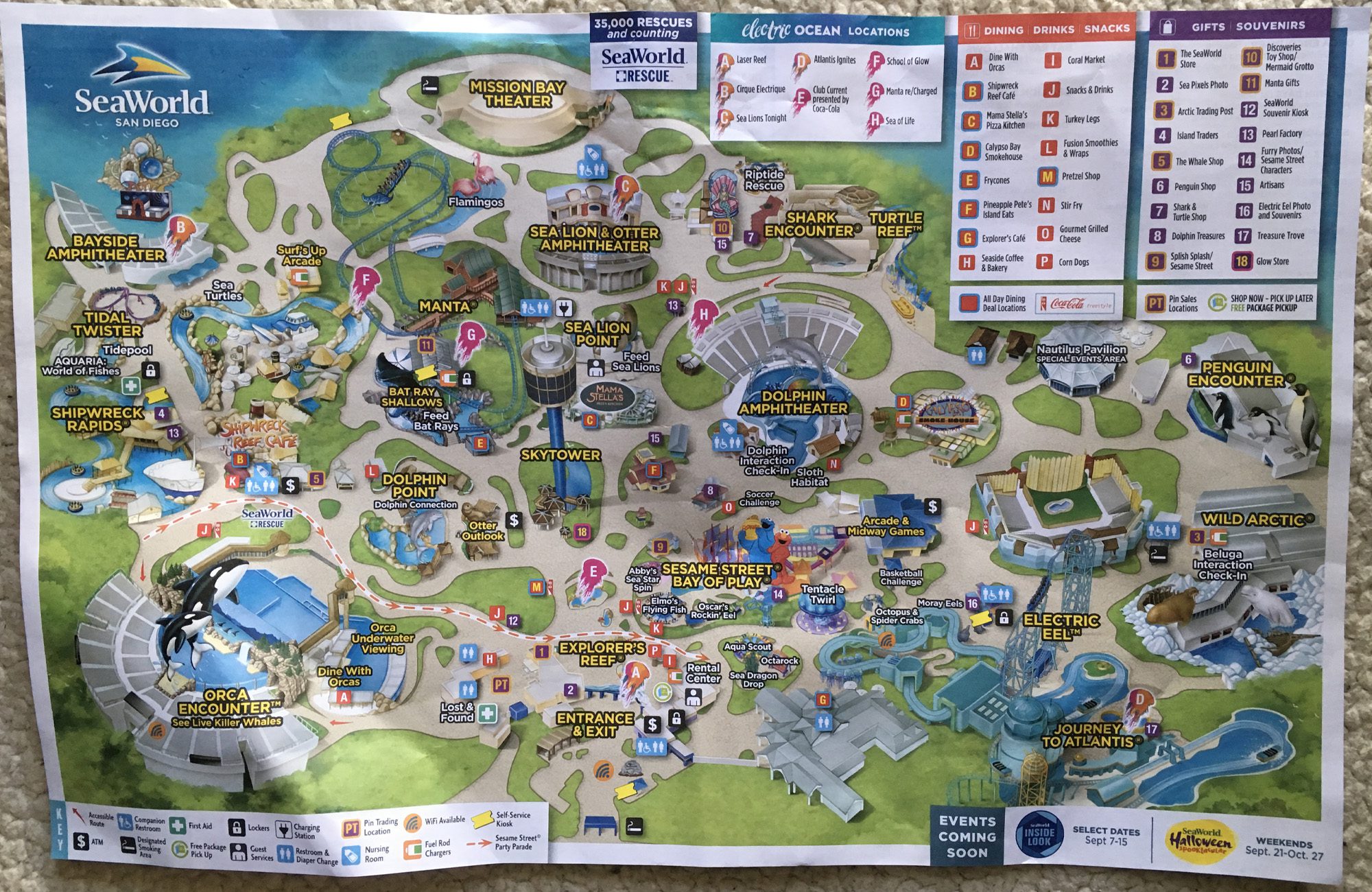 This is the 2019 SeaWorld San Diego park map, check out the map pictures.