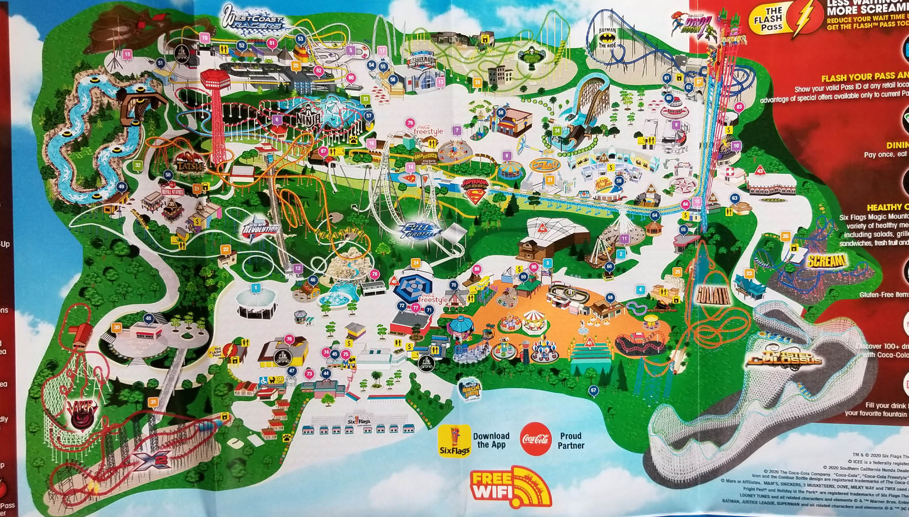 this is the 2020 Six Flags Magic Mountain park map & guide Los Angeles, CA. I love the new West Coast Racers its pretty cool 🙂