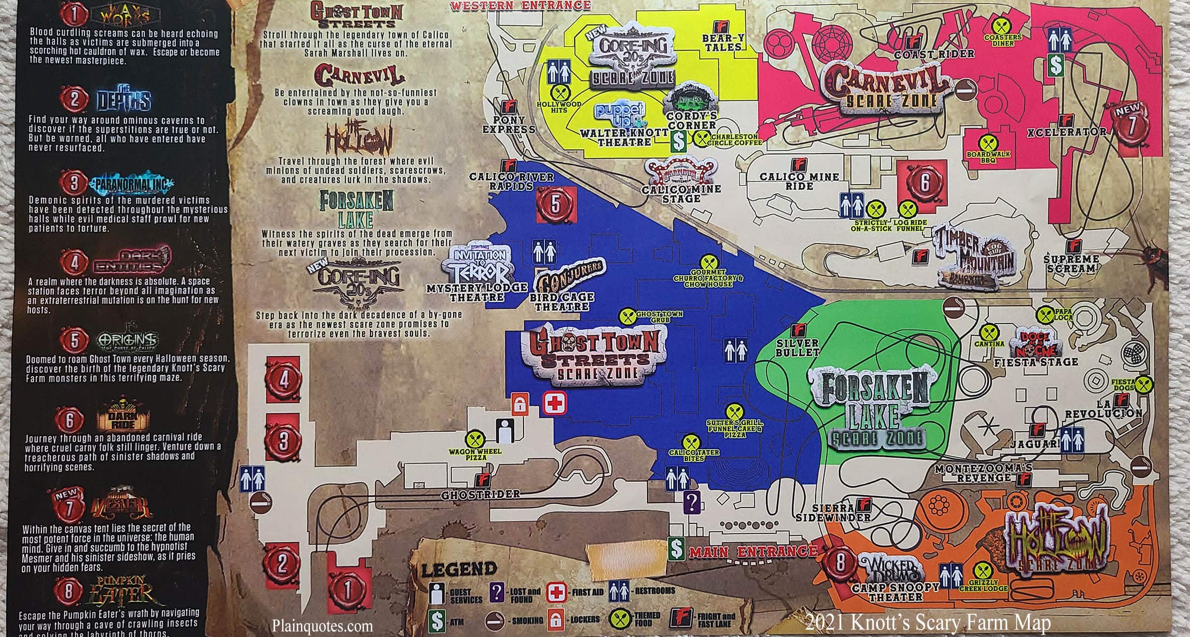 I’m not sure if you guys been to Knott’s or not, but its one of my favorite parks and I just love it. I will start with the Knott’s Scary Farm map first because I just love Knott’s Scary Farm.