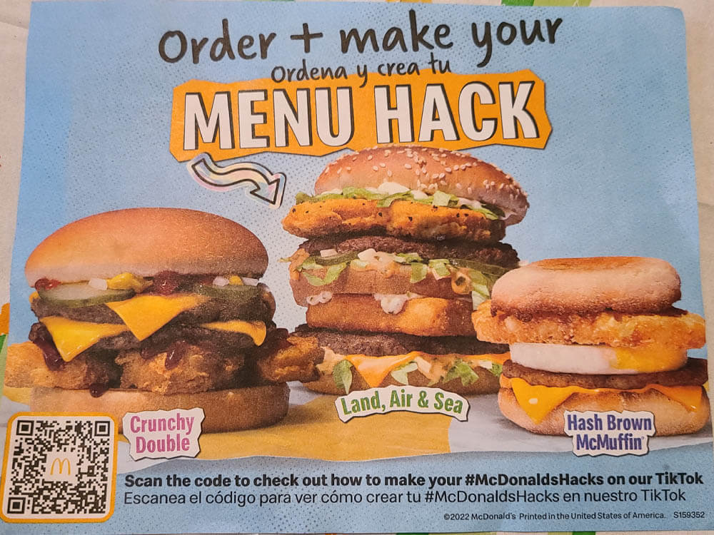 At the end of January, McDonald’s announced their Menu Hack menu. This menu consists of 4 hacked sandwiches that are so popular that McDonald’s made it part of their menu for this promotion. The menu hacks are: