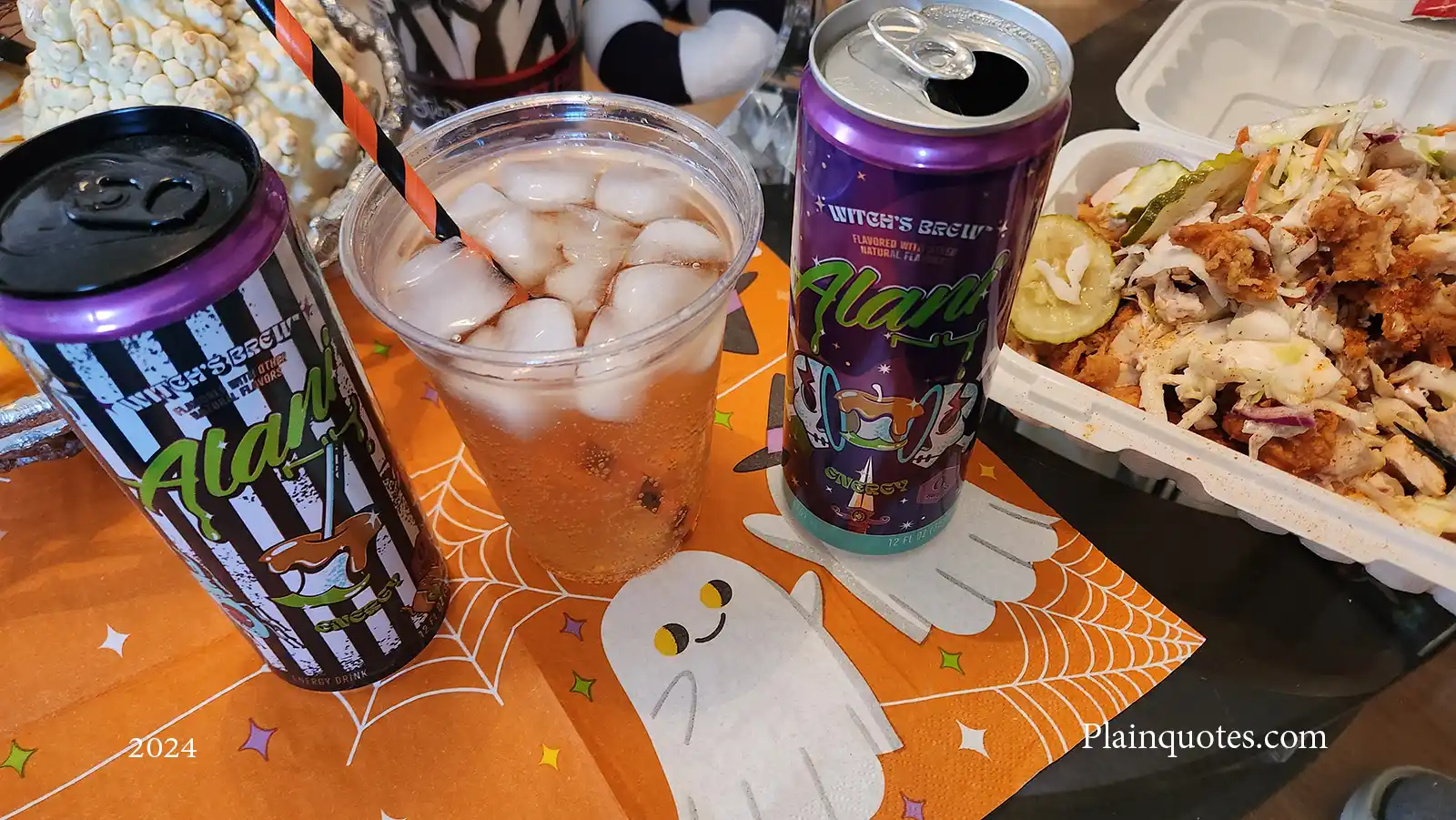 This year I found them in two designs. The one that is black and white with beetles on it and the one with skulls and apple with caramel on it. The one that is black and white disappeared from the shelves and the skulls took over. Same exact drink as 2023 except in different design cans. I liked 2023 more as it brought more attention to the witch details. For some reason, the purple can is kind of sourer than the black and white or it’s just in my head.