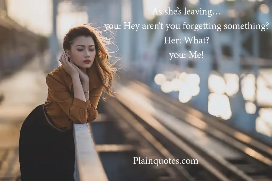 The next time she is leaving, take it as a good thing and not a bad thing. However, duh! This is a pickup line which means they are not even together to begin with. That said, this is more fishy than it seems.
