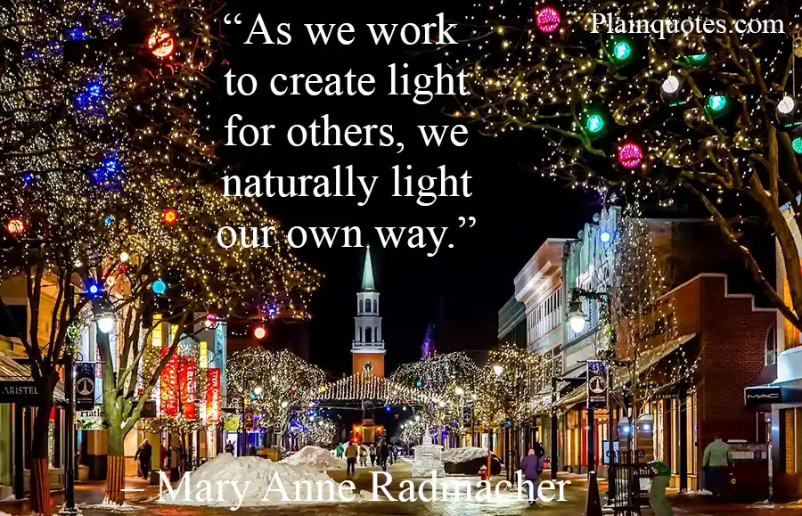 “As we work to create light for others, we naturally light our own way.” – Mary Anne Radmacher