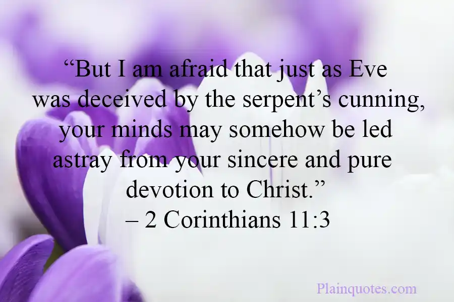 “But I am afraid that just as Eve was deceived by the serpent’s cunning, your minds may somehow be led astray from your sincere and pure devotion to Christ.” – 2 Corinthians 11:3 NIV