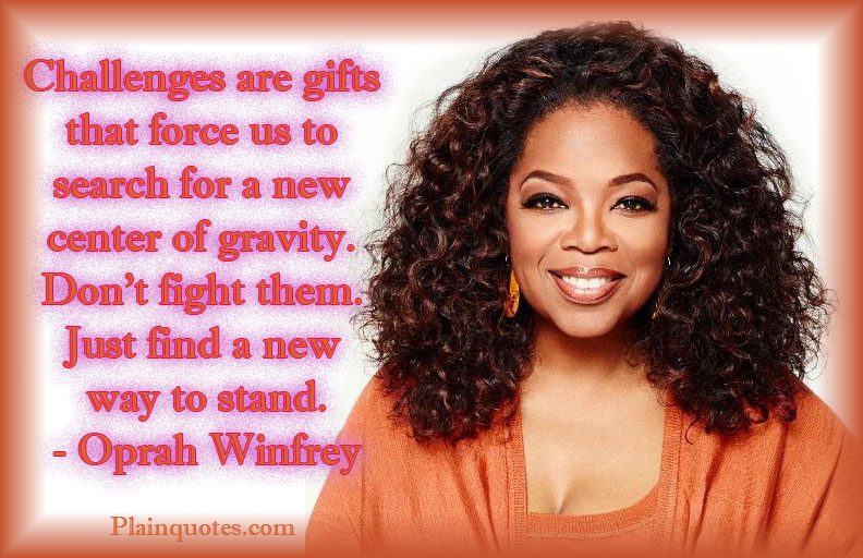 “Challenges are gifts that force us to search for a new center of gravity. Don’t fight them. Just find a new way to stand.” – Oprah Winfrey