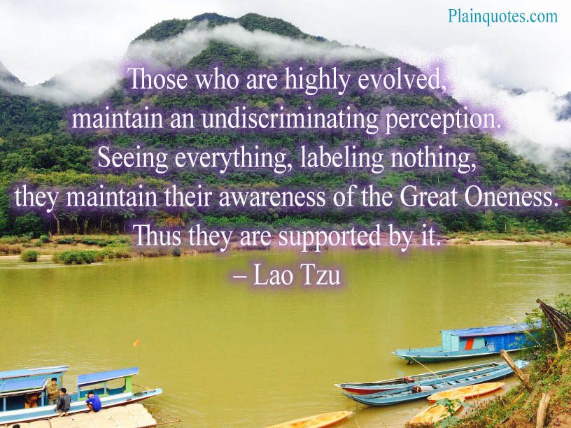 “Those who are highly evolved, maintain an undiscriminating perception. Seeing everything, labeling nothing, they maintain their awareness of the Great Oneness. Thus, they are supported by it.” – Lao Tzu