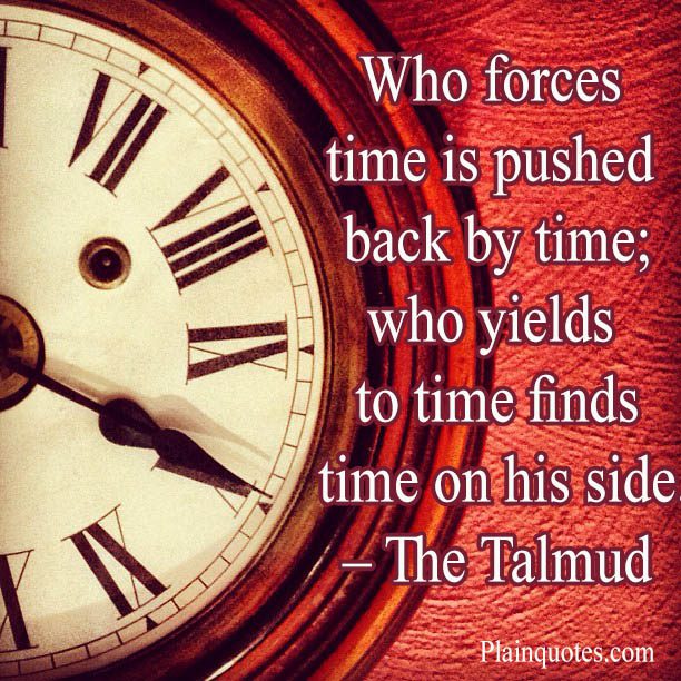 “Who forces time is pushed back by time, who yields to time finds time on his side.” – The Talmud