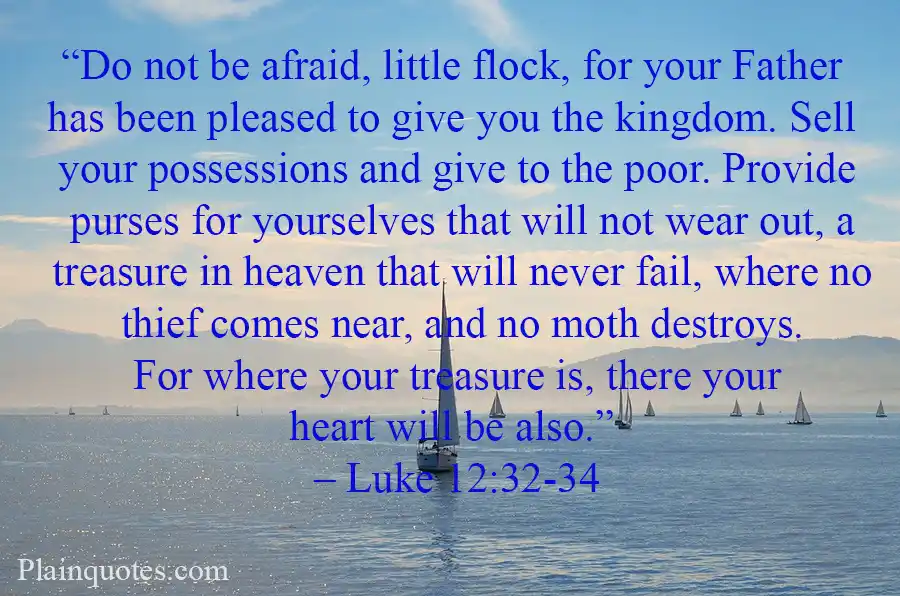 “Do not be afraid, little flock, for your Father has been pleased to give you the kingdom. Sell your possessions and give to the poor. Provide purses for yourselves that will not wear out, a treasure in heaven that will never fail, where no thief comes near, and no moth destroys. For where your treasure is, there your heart will be also.” – Luke 12:32-34 (NIV)
