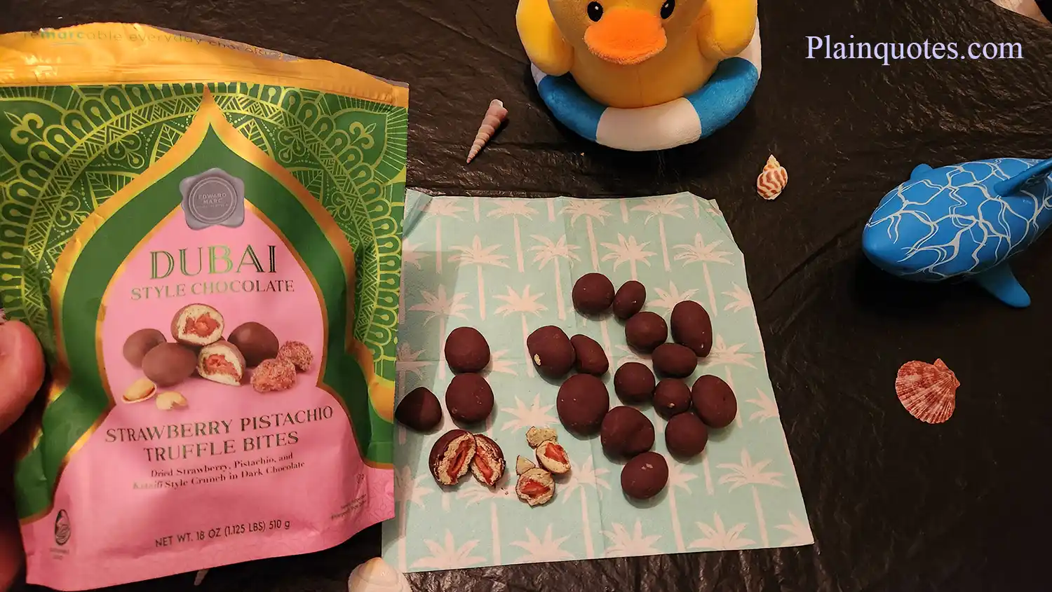 This is very addicting and so good you end up eating like half the bag and still continue eating. Even though it has dried strawberries it reflects to cherry taste from some of the bites. The pistachio and Kataifi are silent in taste. Also, the dark chocolate tastes more like milk than dark because it is just so sweet. Great price at Costco for just $16.99.