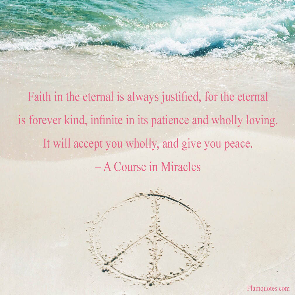 “Faith in the eternal is always justified, for the eternal is forever kind, infinite in its patience and wholly loving. It will accept you wholly, and give you peace.” – A Course in Miracles