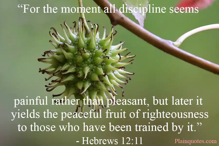 “For the moment all discipline seems painful rather than pleasant, but later it yields the peaceful fruit of righteousness to those who have been trained by it.” - Hebrews 12:11 ESV