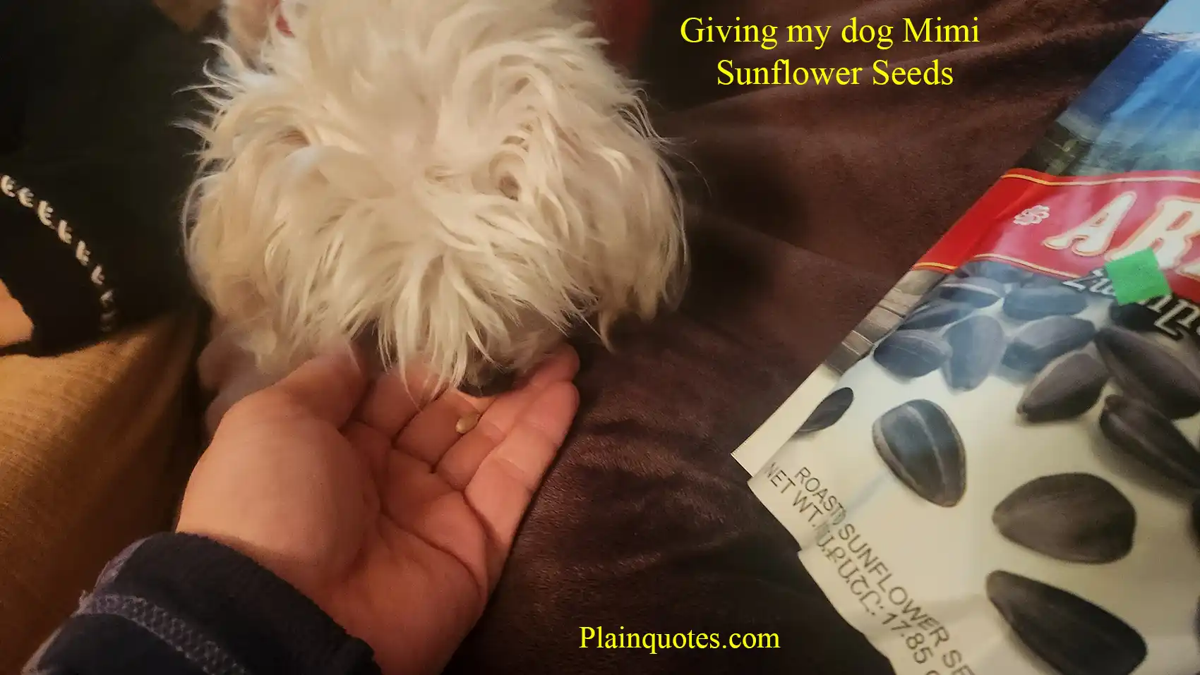 There are days when I come home from work and I’m just so tired. Sometimes, like twice or three times a week I just come home and just eat sunflower seeds. These are the days that I give my dog sunflower seeds. The most important thing in giving sunflower seeds to dogs is making sure that there is no salt. The last thing you want to do is give salted sunflower seeds. My dog Mimi goes crazy for roasted unsalted sunflower seeds.