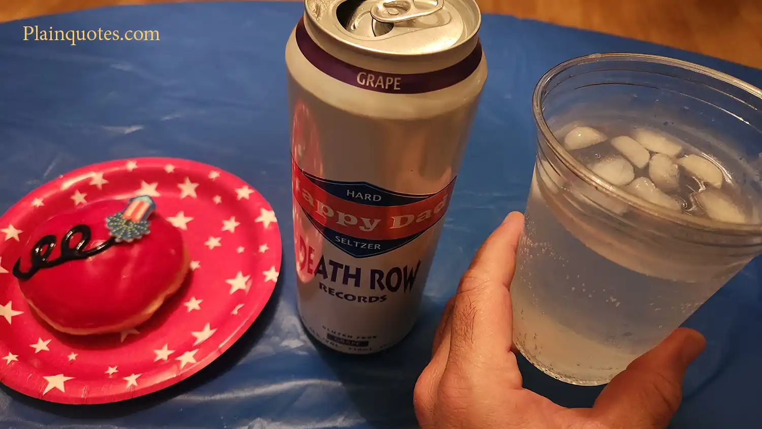 As I was trying to find Hulk Hogans Beer at Walmart I found Happy Dad Death Row Records Hard Seltzer. I got happy as there was size 24 oz. which was cold and ready to drink from the fridge section. As the alcohol volume is 5%, I thought this was going to be very light, but the alcohol is pretty strong on the taste. The alcohol comes in at 50% of the flavor while the grape comes in at the other 50%. Pretty good and went just perfect with my Krispy Kreme 4th of July doughnuts.