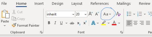 Once you click on the arrow next to the capital A and lowercase a icon you will have 5 choices to choose from: