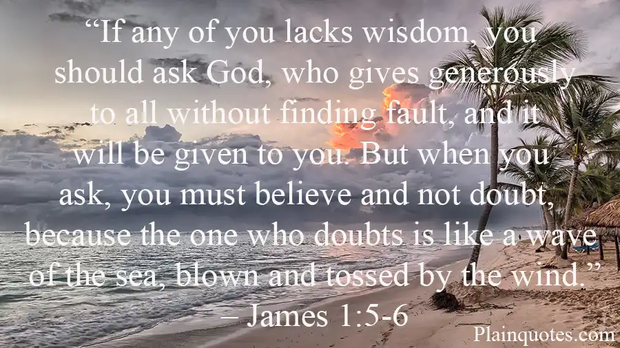 “If any of you lacks wisdom, you should ask God, who gives generously to all without finding fault, and it will be given to you. But when you ask, you must believe and not doubt, because the one who doubts is like a wave of the sea, blown and tossed by the wind.” – James 1:5-6 NIV