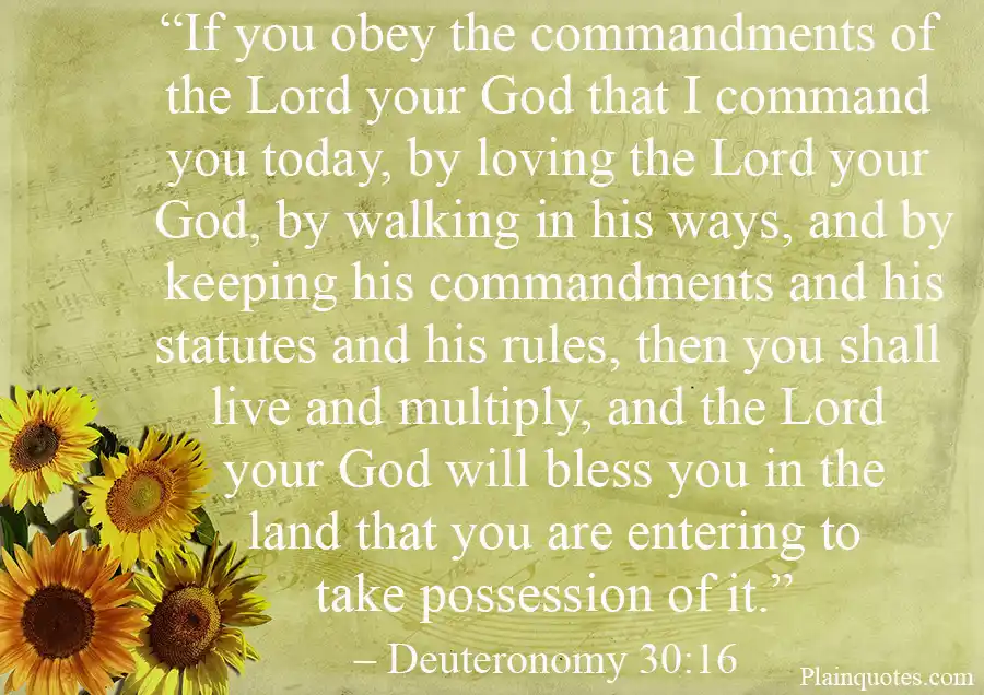 “If you obey the commandments of the Lord your God that I command you today, by loving the Lord your God, by walking in his ways, and by keeping his commandments and his statutes and his rules, then you shall live and multiply, and the Lord your God will bless you in the land that you are entering to take possession of it.” – Deuteronomy 30:16 (ESV)