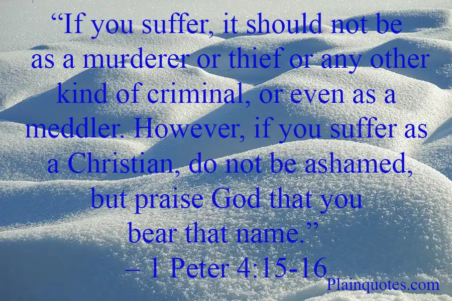 “If you suffer, it should not be as a murderer or thief or any other kind of criminal, or even as a meddler. However, if you suffer as a Christian, do not be ashamed, but praise God that you bear that name.” – 1 Peter 4:15-16 NIV