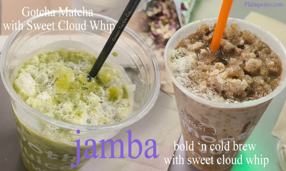 This past week Jamba came out with some new iced caffeine drinks. They came out with Jamba Gotcha Matcha with Sweet Cloud Whip & bold ‘n cold brew with sweet cloud whip. As this two drinks are loaded with caffeine, one has coffee & the other has green tea. I like how one is coffee and the other tea, because this way you can choose which you want as caffeine. For me, my choice is obvious that I choose the Gotcha Matcha with Sweet Cloud Whip as my first choice.