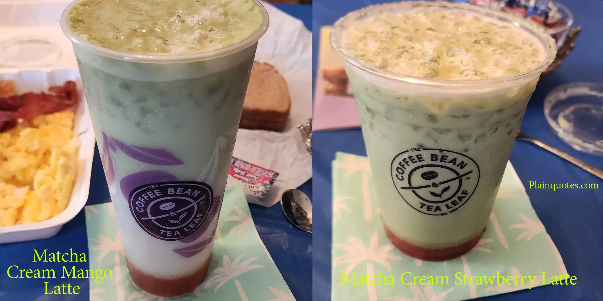 Two summer drinks with 3 layers of colors are available at the Coffee Bean and Tea Leaf. The first one is the Matcha Cream Strawberry Latte, and the second one is the Matcha Cream Mango Latte. Both come with milk in the middle and Japanese Matcha on the top. Available in 2 sizes which almost feels like it’s magic with the 3 layers of colors taking effect. I tried both sizes and I highly suggest the larger size. For some reason, the regular size which is the smaller one kind of gets everything mixed together quickly. The larger one stays more in place and so cool with the colors.