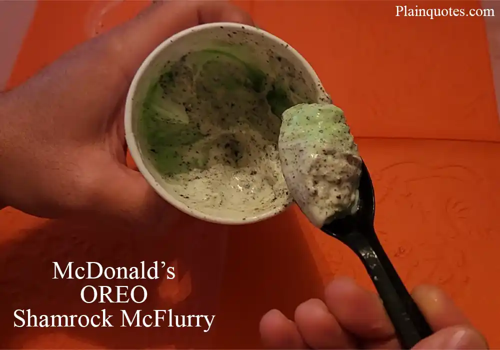 The McFlurry comes in colors of Green, White and Black as the Shamrock syrup is the green, vanilla is the white and the black is the Oreo pieces.