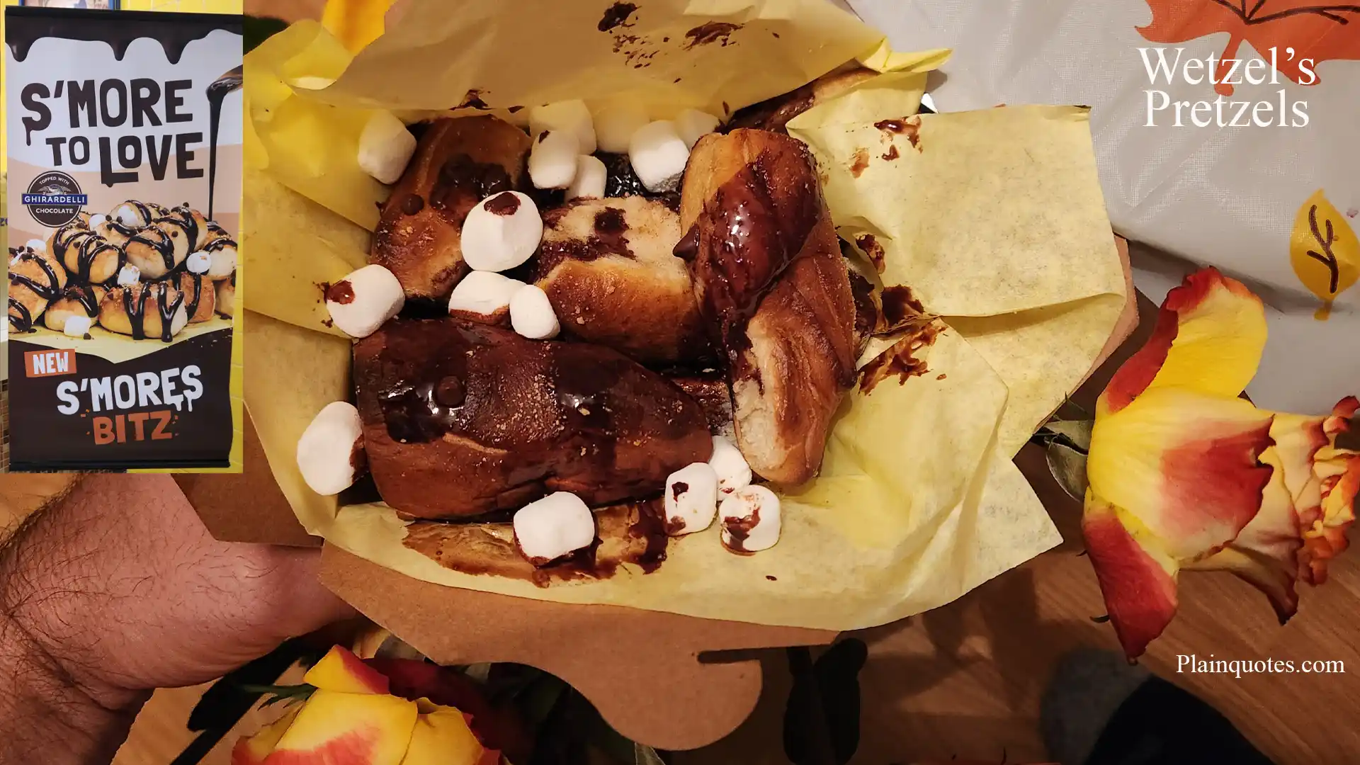 It’s as if I’m dipping buttery pretzels in chocolate and eating it with no S’mores like taste. However, it is delicious, and I recommend giving it a try. Also, get ready to lick your fingers because you are going to get chocolate all over it. Amazing chocolate taste and it sure is good but just not getting S’mores alike taste.