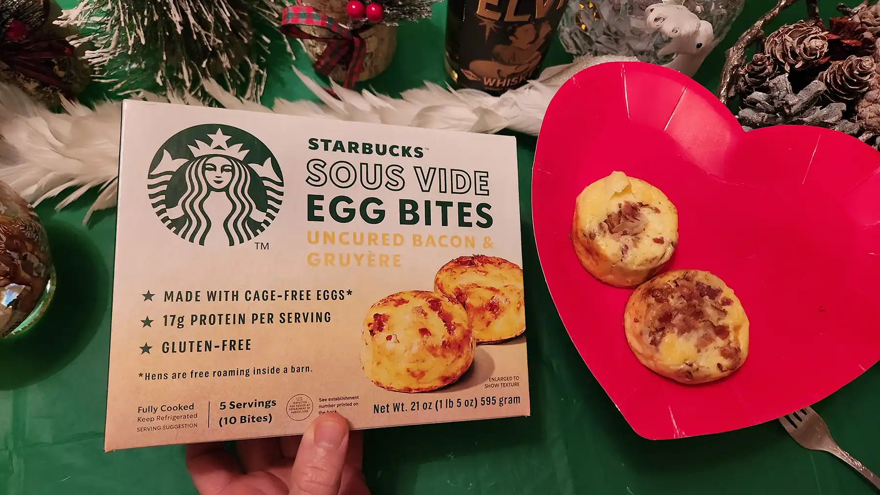 There are many different Starbucks Egg Bites which come in a pack of 2. This may sound like it’s something new, but it is basically scrambled eggs shaped in circles that you hold and bite into. The actual name is Starbucks Sous Vide Egg Bites which in short people just call egg bites. Normally, you order this at Starbucks but now they are available at Costco for the time being. I found two different egg bites at Costco with a price that is unbeatable at Starbucks. I’m going to start with the bacon one first because it is my favorite.