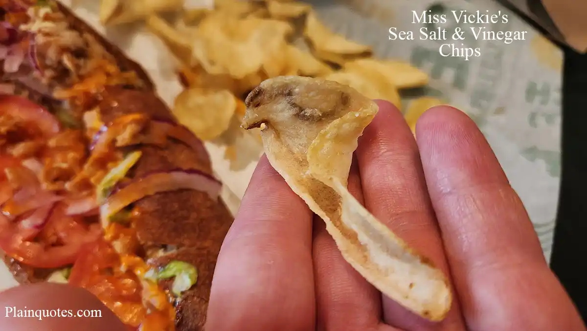 This meal came with the chips that I found that just looked like a dog or a lion. Perhaps, sea lion or seal. What animal do you guys think it looks like? I opened the Miss Vickie’s Sea Salt & Vinegar Chips and this animal alike chip that deserves to be in the museum or in my tummy.