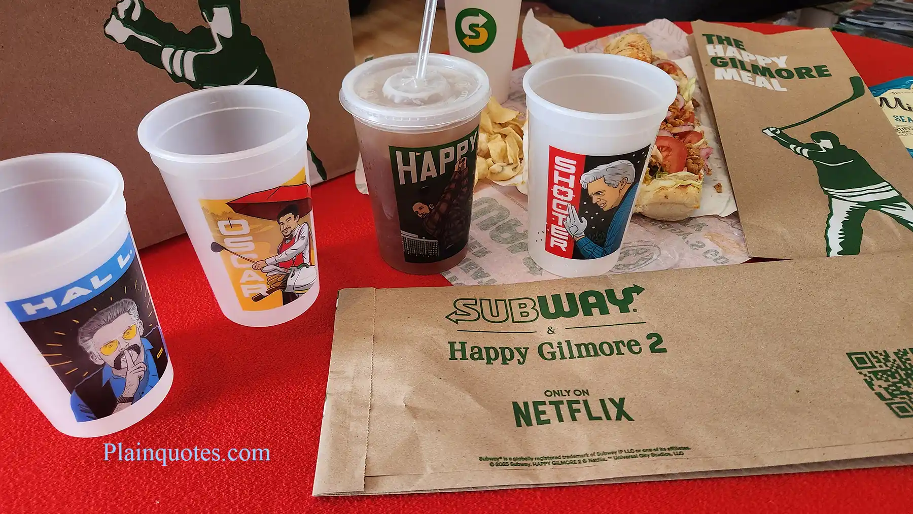 Subway brings us 4 collectable cups for the film Happy Gilmore 2 which comes out on July 25, 2025. It is coming out on that day only on Netflix so set your calendar and grab some popcorn for this special film. The price of the cup is just $1 but you need to add it to a meal. Basically, you make any meal into The Happy Gilmore Meal by just adding it to the meal for $1. It doesn’t matter if you get 6″ combo or footlong combo as long as it’s a combo, you can add the cup to it.