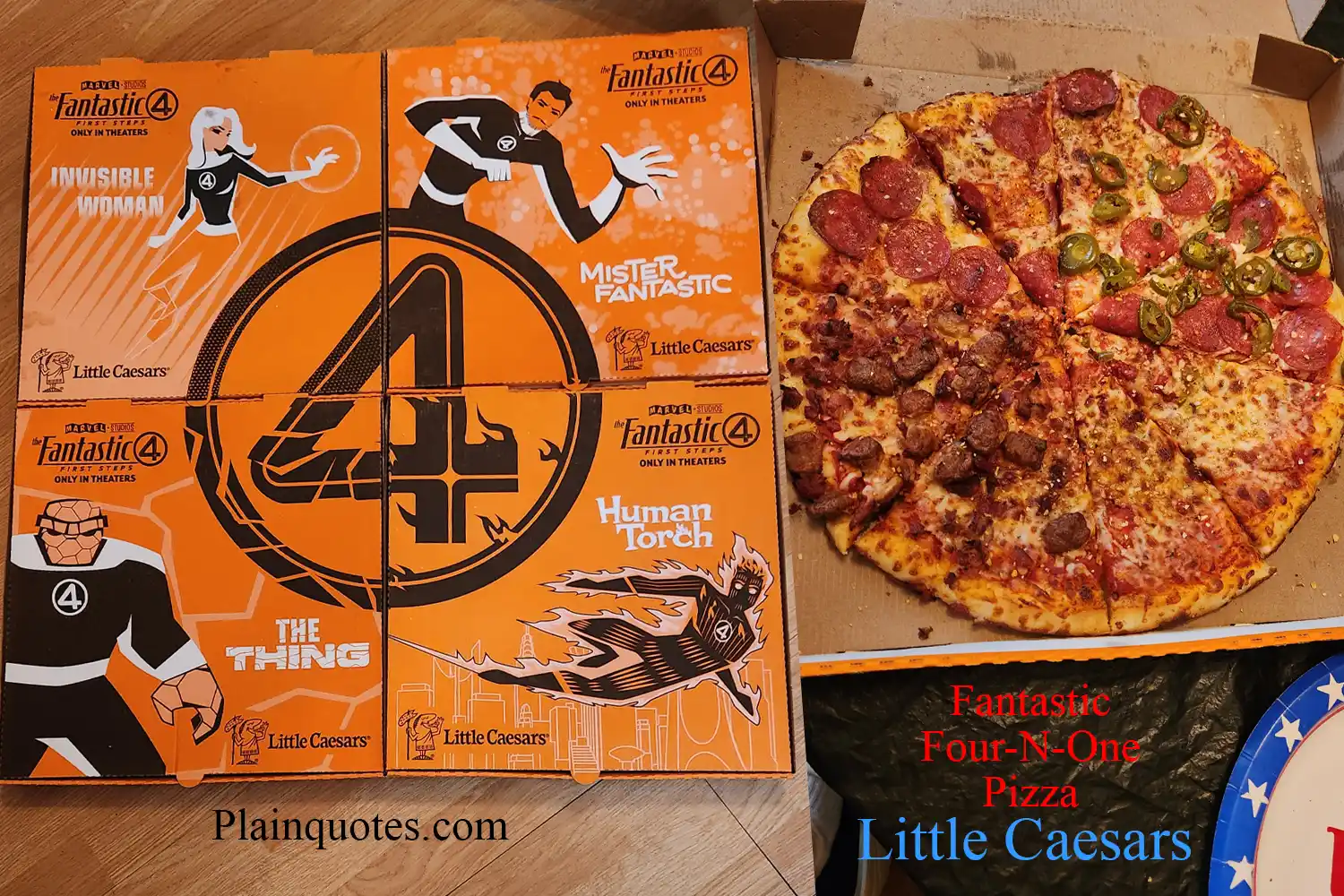Who’s ready to watch the film The Fantastic 4 First Steps. Well, something very special is that Little Caesars brings us The Fantastic 4 First Steps Pizza. It comes with different boxes which there are a total of 4 of them. What is extra special is that the 4 boxes combine together into one giant Fantastic 4 Box. On top of that there are 4 different kinds of pizzas into one pizza. This is as special as it can get which the film comes out in theatres in July 25, 2025.