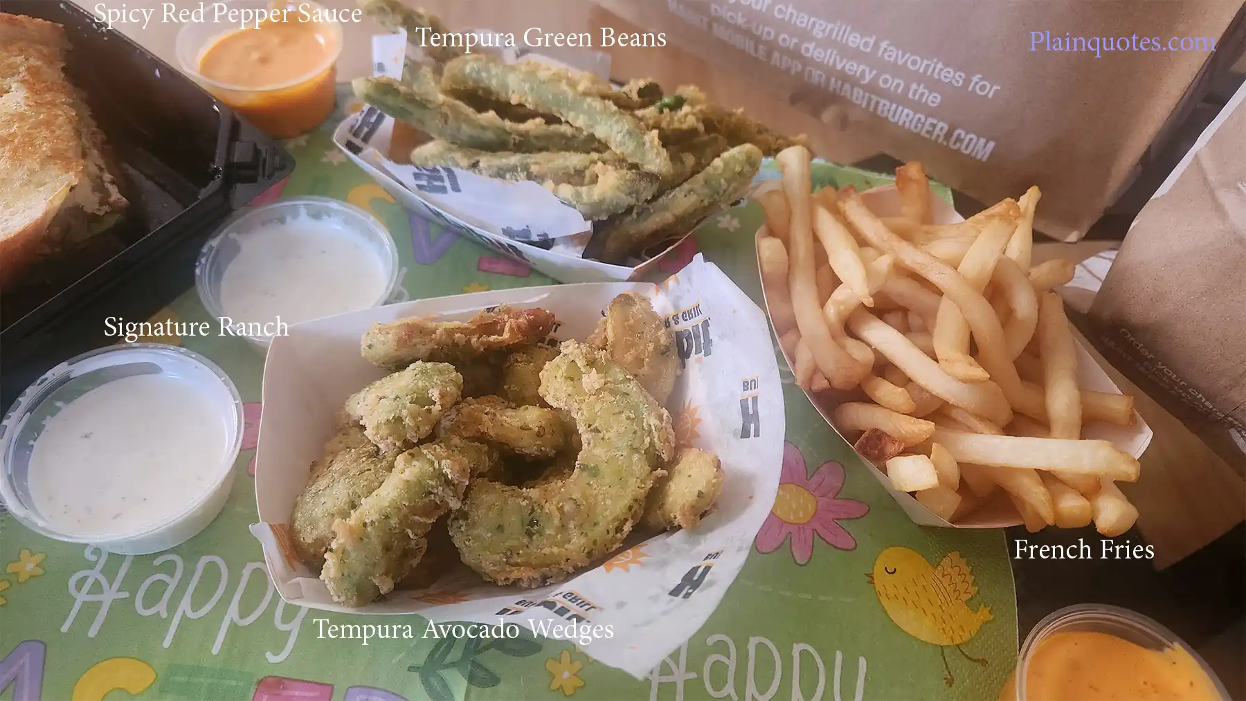 A lot of time I got to The Habit Burger & Grill, and I keep rotating the sides. Usually, I like to get two sides as I find the French Fries alone to be small and not enough. Therefore, I end up with French Fries along with Tempura Green Beans or other sides. Many side dishes to choose from and normally, I find my favorite to be the Tempura Green Beans with the Spicy Red Pepper Sauce.