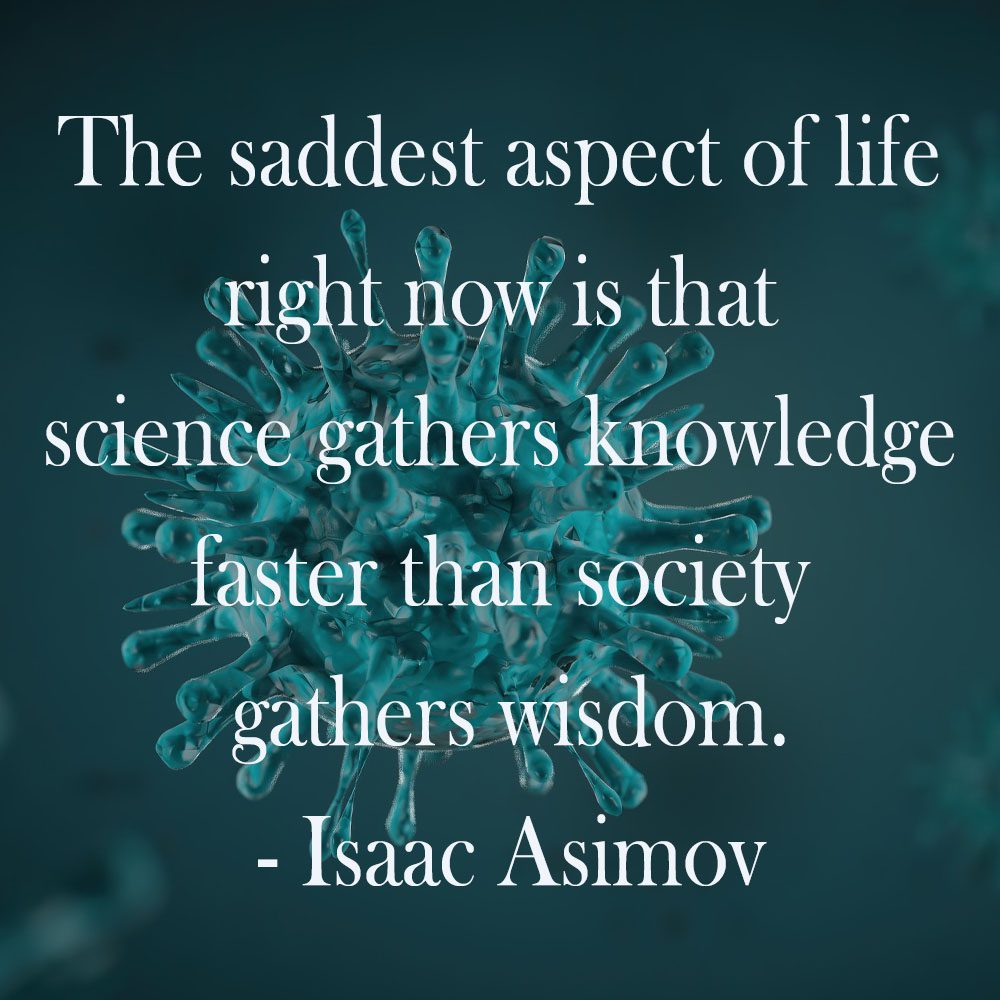 “The saddest aspect of life right now is that science gathers knowledge faster than society gathers wisdom.” – Isaac Asimov
