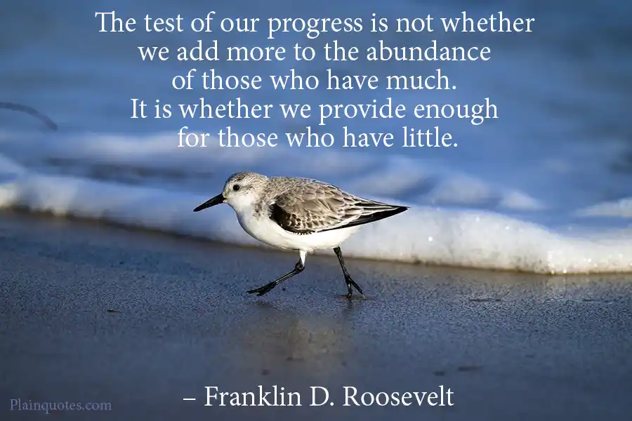 The test of our progress is not whether we add more to the abundance of those who have much. It is whether we provide enough for those who have little.