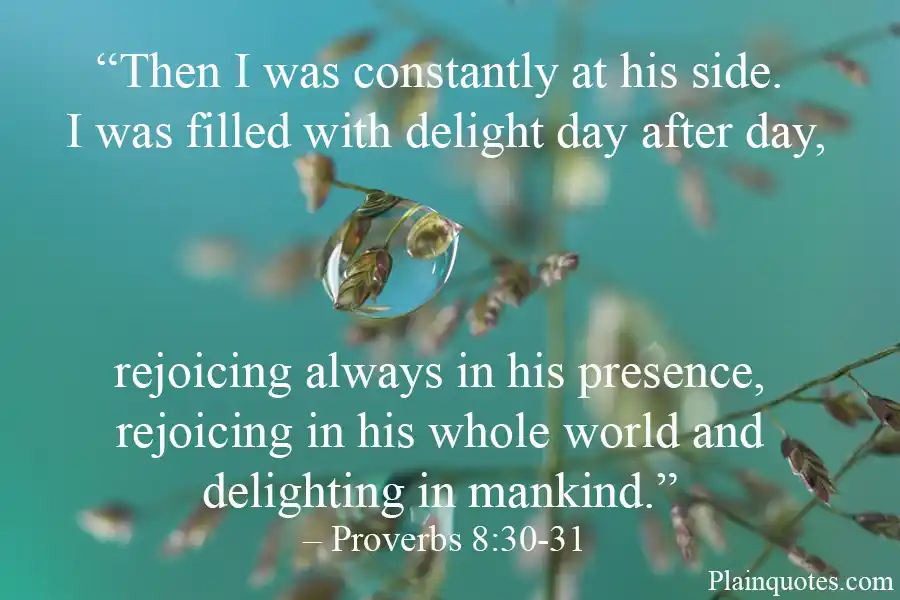 “Then I was constantly at his side. I was filled with delight day after day, rejoicing always in his presence, rejoicing in his whole world and delighting in mankind.” – Proverbs 8:30-31 (NIV)