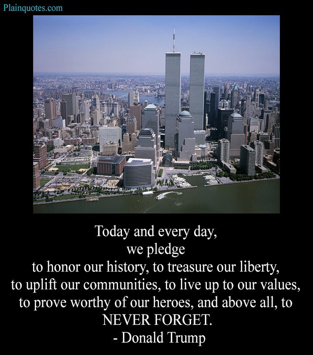 “Today and every day, we pledge to honor our history, to treasure our liberty, to uplift our communities, to live up to our values, to prove worthy of our heroes, and above all, to NEVER FORGET.” – Donald Trump