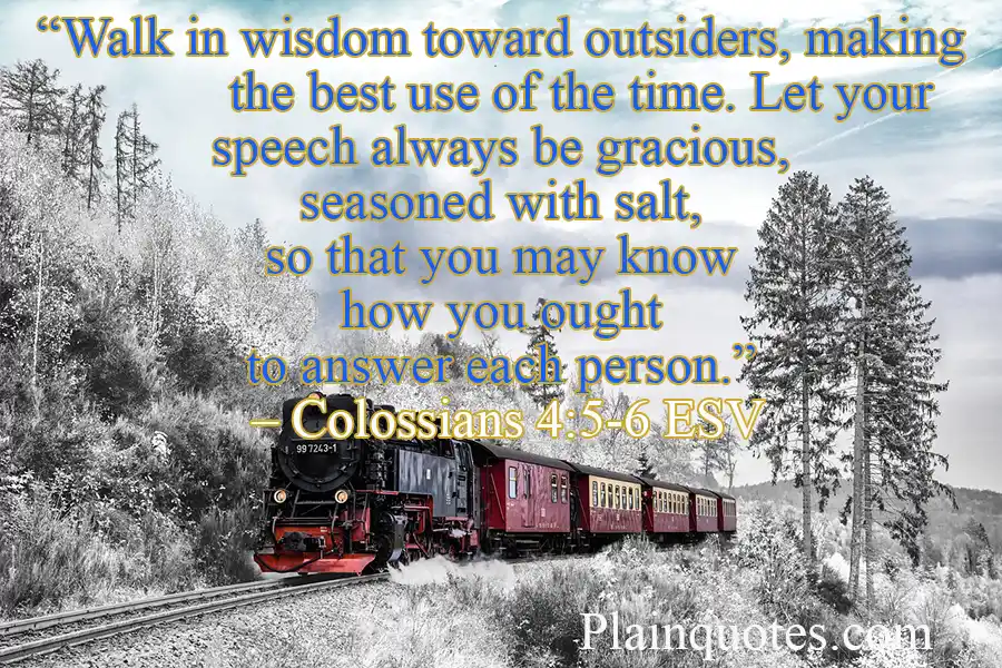 “Walk in wisdom toward outsiders, making the best use of the time. Let your speech always be gracious, seasoned with salt, so that you may know how you ought to answer each person.” – Colossians 4:5-6 ESV