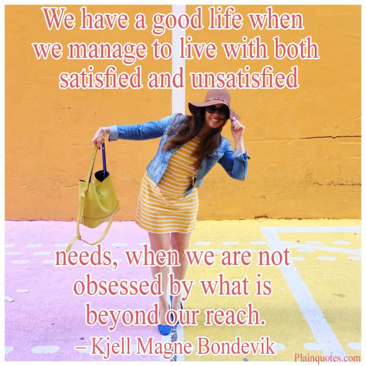 “We have a good life when we manage to live with both satisfied and unsatisfied needs, when we are not obsessed by what is beyond our reach.” – Kjell Magne Bondevik